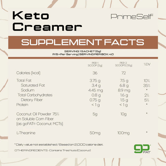 Gluten FreeSugar FreeKetoDairy FreePRIMESELF - Keto Creamer - 40 Sachets