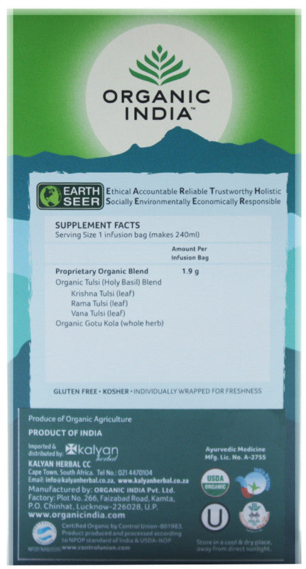 ORGANIC INDIA - Tulsi Gotu Kola Tea - 25 Tea Bags
