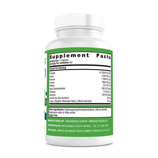 Gluten FreeSugar FreeDairy FreeVegetarianMETAGENICS - DigestiZyme+ - 90 Capsules