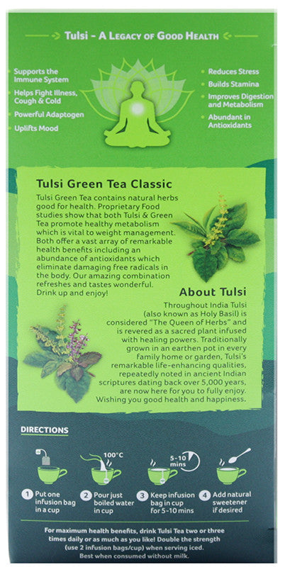 VeganOrganicGluten FreeSugar FreeDairy FreeORGANIC INDIA - Tulsi Green Tea - 25 Tea Bags